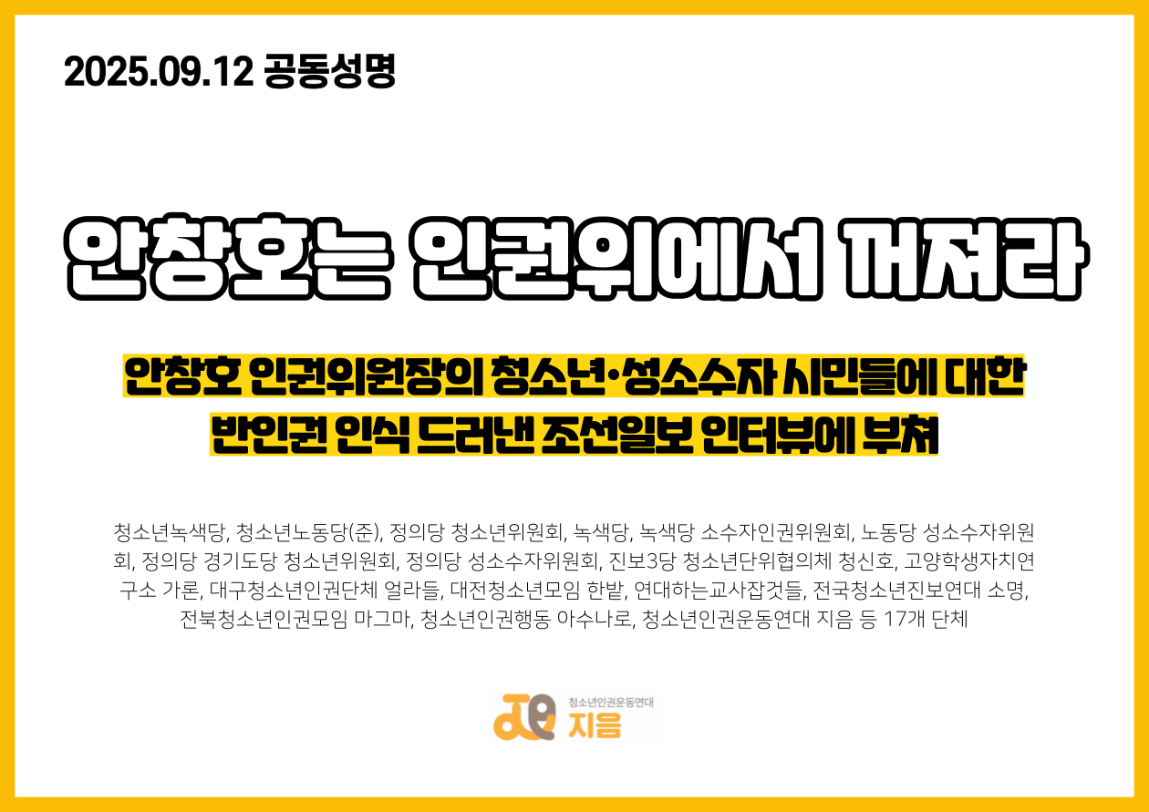 - 안창호 인권위원장의 청소년·성소수자 시민들에 대한 반인권 인식 드러낸 조선일보 인터뷰에 부쳐