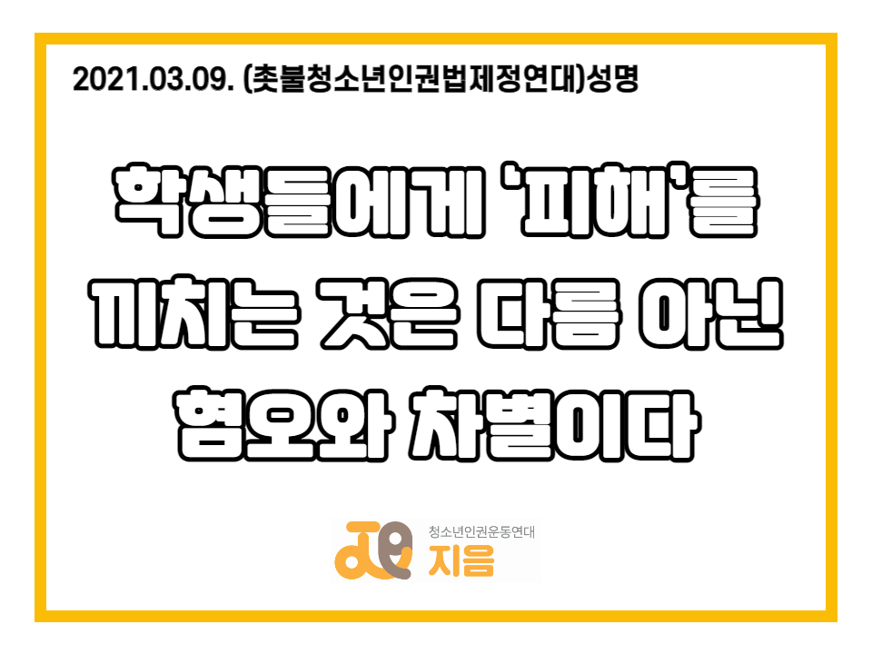 [성명] 학생들에게 ‘피해’를 끼치는 것은 다름 아닌 혐오와 차별이다